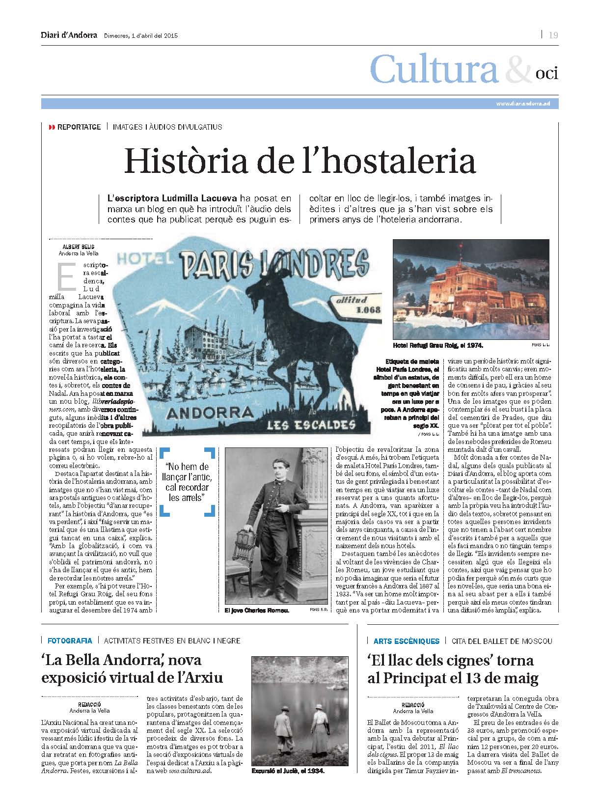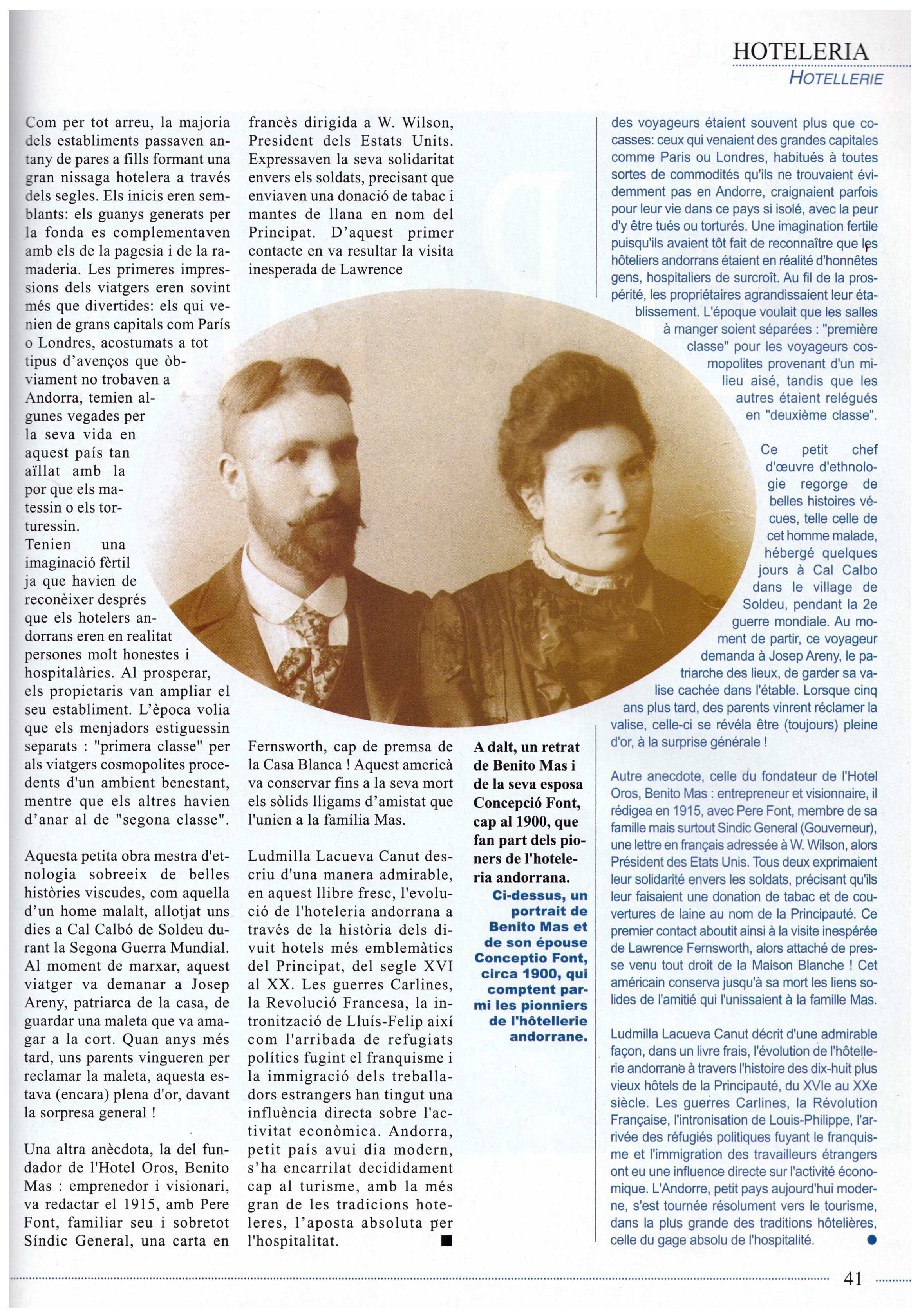 Els pioners de l’hoteleria andorrana (del segle XVI al segle XX), l’home de mirada clara (Charles Romeu, veguer francès de 1933 a 1933) i diversos contes il·lustren aquesta Andorra idíl·lica i exòtica per a certs viatgers estrangers del segle XIX i principis del segle XX. És una recerca de les nostres arrels que van desapareixent i que paga la pena de recollir-les. Un poble sense tradicions i sense arrels és un poble que ven la seva ànima. Es bo de mirar cap endavant i buscar una millor vida però com deia Antoni Fiter i Rossell al Manual Digest (any 1748) cal “Seguir los lloables Estils dels antipassats regla segura per no Errar”.