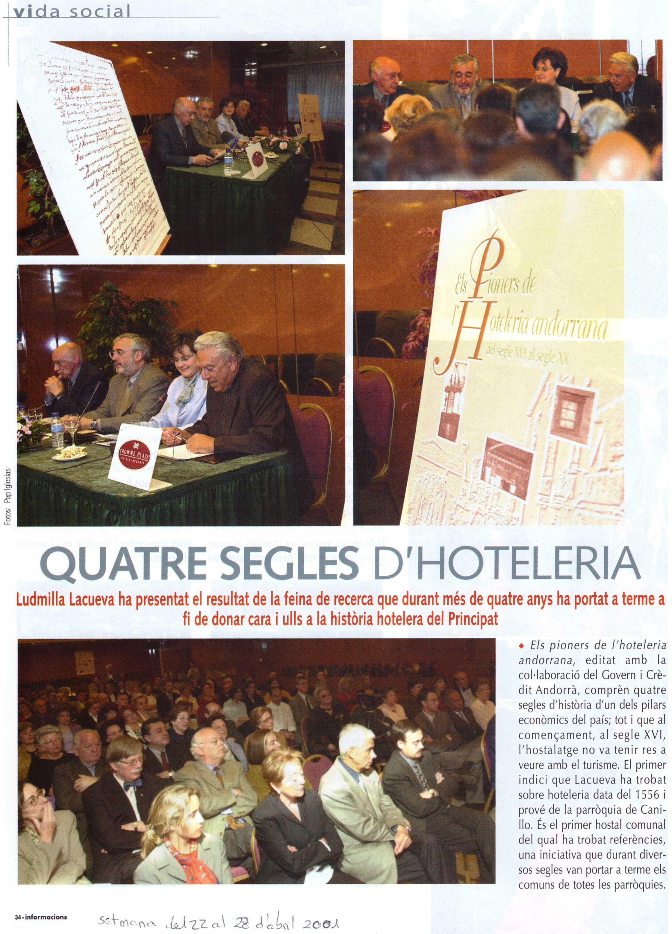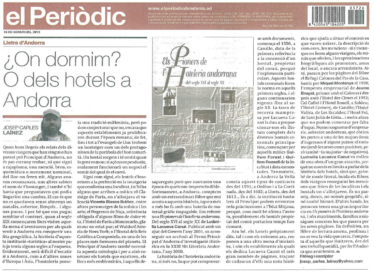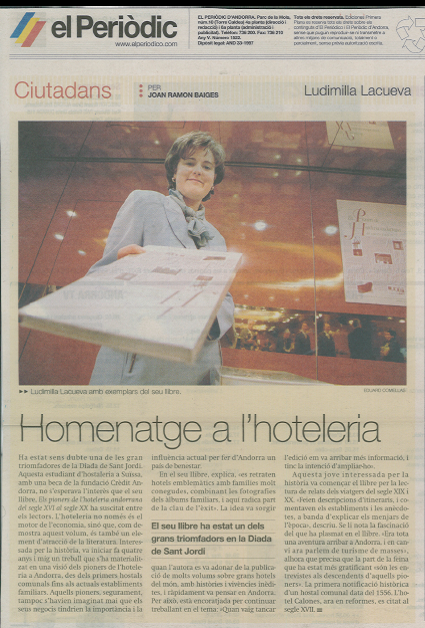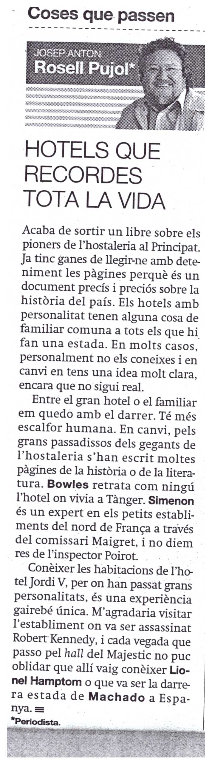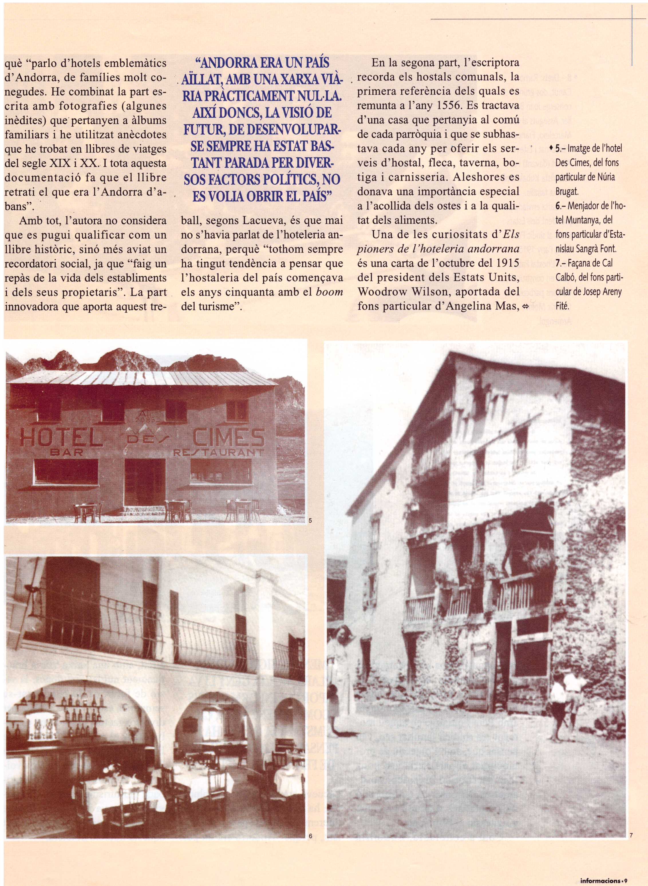 En cap cas ha sigut la meva intenció fer una guia dels hotels existents a Andorra. A través d’aquestes pàgines, he volgut valorar i retre homenatge a l’esperit d’un cert nombre de persones que al meu entendre han sigut pioners en aquest sector. N’he fet una selecció per cada parròquia segons la documentació trobada i caràcter històric en el si de la història del país i de la societat autòctona a través dels anys. La llista és llarga però ens limitarem a fer un viatge concís per aquests hotels tan emblemàtics i plens d’històries. Tanmateix potser trobaran a faltar algun hotel emblemàtic però sense l’ajut i la voluntat de la família en qüestió no ha estat possible fer un escrit. Tot i la mancança de certa informació, espero que aquesta no minvi l’interès del lector.